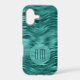 Faux Teal Foil Stripe Waves Monogram iPhone Case