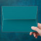 Teal envelope with the inside featuring a photo of glitter in a matching shade of teal. It is faux glitter as it is an image that will print on the inside. Customize the envelop color with white, black or another color to match your wedding palette.