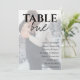 Faux Vellum Photo Wedding Table Seating Chart . The design has space to add a photo with a Faux Vellum effect background and with text overlay . The design has table number mentioned and space to add the guest names sitting on the table. This modern wedding photo table number seating chart can be easily customized by changing the names of the guests and the table number .