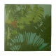 The original artwork by HomeWare on this small Ceramic Tile uses an original photograph to create the illusion of retro or vintage fabric. In the photo, deep green tropical leaves, in bright sunlight and deep shadow, fan out across a background of deep blue sky. The design has an antique green tint over it, and a texture which gives it a look of old silk fabric.