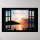 Faux Window with Beach Sunset Ocean Poster