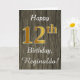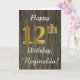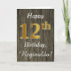 This simple birthday card design features the message "Happy 12th Birthday", with the "12th" having a faux gold-like appearance. It also features a custom name, and a faux wood appearance background. It could be given to somebody who is celebrating their twelfth birthday.