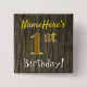 Faux Wood, Faux Gold 1st Birthday + Custom Name Pinback Button