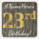 Faux Wood, Faux Gold 23rd Birthday + Custom Name Square Sticker