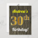 Faux Wood, Faux Gold 30th Birthday & Custom Name Postcard