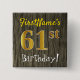Faux Wood, Faux Gold 61st Birthday + Custom Name Button