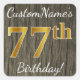 Faux Wood, Faux Gold 77th Birthday + Custom Name Square Sticker
