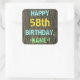 Faux Wood, Painted Text Look, 58th Birthday + Name Square Sticker