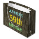 This fun birthday gift bag design features a message like "JENNIFER’S 59th BIRTHDAY!", where the name can be personalized. The background features a rustic, brown, faux wood grain appearance pattern. The customizable message text features colors like blue, yellow, and green, and it has an appearance inspired by that of painted, stenciled lettering. A birthday-themed gift bag like this might be a fun, silly way to give a gift to somebody who is celebrating their fifty ninth birthday. [~Z0000319]