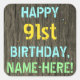 Faux Wood, Painted Text Look, 91st Birthday + Name Square Sticker