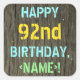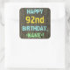 Faux Wood, Painted Text Look, 92nd Birthday + Name Square Sticker