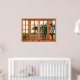 This faux window poster features a breathtaking and realistic view of golden grass and trees. The 4 paneled wooden bay window is designed with light wood and looks like a real window on your wall.