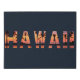 Bold “HAWAII” letters contain a glowing tropical sunset of warm oranges and pinks, with dark palm silhouettes and calm ocean below. The crisp typography and vibrant colors bring a laid-back island-evening feel that’s perfect for evoking sunset strolls on a Hawaiian shore.