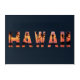 Bold “HAWAII” letters contain a glowing tropical sunset of warm oranges and pinks, with dark palm silhouettes and calm ocean below. The crisp typography and vibrant colors bring a laid-back island-evening feel that’s perfect for evoking sunset strolls on a Hawaiian shore.