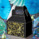 Refined favor boxes designed to complement elegant and modern event styling. The bold black base with gold accents creates a luxurious presentation for small gifts.