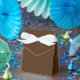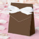 Favor Box Tent Style Personalizable Shown with a rich dark brown color background and white bow.