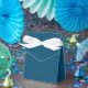 Favor Box Tent Style Personalizable Shown with a simple Egyptian Blue color background and white bow.