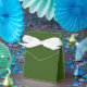Favor Box Tent Style Personalizable Shown with a rich forest green color background and white bow.