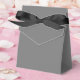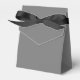 Favor Box Tent Style Personalizable Shown with a simple gray color background and black bow.