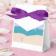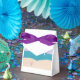 This favor or gift box is designed with my depiction of a beach scene with a chair and umbrella next to a turquoise ocean.
