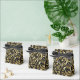 Gorgeous plumes and feathery swirls in "metallic" gold are beautifully dramatic against a black as night background in this stunningly elegant, computer-generated design. Gold, as you might know, symbolizes wealth and endurance while black is the epitome of formality, elegance, allure and mystery. No wonder these two are one of the "power" color combinations. With the addition of the black bow, this gorgeous favor/gift box is an excellent addition to your formal wedding or 50th anniversary party.