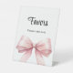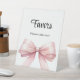 White elegant background, decorated with a large pink bow. Text: Favors. Please take one!