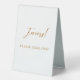 This table tent sign is the perfect size for our tables and easy to read. I also like the material it is made with and no worries about it falling or sliding. Just perfect! Everything about this card is perfect. I like that it says what we want on the front and on the back we were able to personalize a message for our guests.