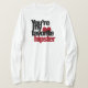 I love this shirt. I had written to the artist asking her if this picture was available on a shirt, and she wrote me back telling me where I could find the shirt. These shirts can be custom made to have a different saying. I loved this saying and went with it. The artist wrote me back later to tell me that she had seen my order go through. How's that for service? Pretty special. It's just as displayed. Perfect!
