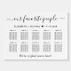 Chic wedding seating chart foam board sign for up to 10 tables featuring "our favorite people" in a stylish script with swashes, your names and wedding date joined together by a heart and "We're so glad you're here" in simple modern typography.