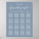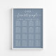 Stylish downloadable dusty blue wedding seating chart sign for up to 16 tables featuring "our favorite people" in simple modern white typography and a chic white script with swashes and your first names and wedding date joined together by a heart. The digital download option allows you to edit with last minute changes and print locally.