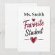 A playful and personalized teacher gift design featuring “Favorite Student” with a custom teacher name. This fun and lighthearted message creates a humorous connection between teacher and student, making it a memorable and engaging gift. Perfect for students who want to give something personal with a touch of humor.
