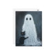 A fun Halloween scene with a ghost covered in yarn and a cat hugging him