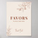 Favors sign are characterized by a boho style with floral artwork and neutral earthy and beige colors.