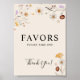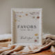 Favors sign are characterized by a boho style with floral artwork and neutral earthy and beige colors.