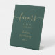 Favors Emerald Green And Gold Script Table Pedestal Sign