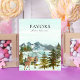 For the Favors table at your baby shower. This design has rustic, watercolor mountains with reflecting lake in front, and pine trees surrounding the lake. Adult deer with her fawn in front. “Favors please take one” text at top.