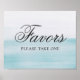 Watercolor blue nautical wedding poster "Favors please take one".