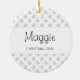 Lightweight, smooth, pure white ornament with nice sheen. Perfect size to be seen from across the room ... and to attract closer inspection! Price was great for ordering enough for the whole family! Clear, bold black design just as requested. Matches the order exactly. Just so nice!