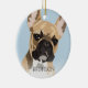 Pop art inspired french bulldog christmas ornament featuring a red fawn frenchie dog on a pastel blue background that can be changed to any color, add your pets name.
