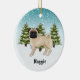 Fawn Pug Cute Cartoon Dog In Blue Winter Forest Ceramic Ornament