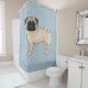 Fawn Pug Dog Cute Cartoon Mops Illustration Blue Shower Curtain