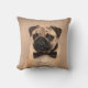 Fawn Pug Dog with Bow Tie Throw Pillow