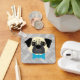 Fawn Pug with bowtie, Herringbone grey Keychain
