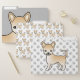 Destei's original cartoon illustration of a fawn smooth coat Chihuahua breed dog. There are three different design variations. One file folder has the dog design with a gray paw print pattern. Then there is a pattern version of the dog and the last variation has a large portrait of the dog in one corner on a gray background color.