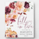 This fall in love bridal shower welcome sign features a burgundy fall autumn floral design. The script heading is an image that cannot be edited. All of the other text is fully editable. For more advanced customization of this design, simply select the "Customize It" button above.