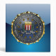 Introducing the emblem of Federal Bureau of Investigation (FBI), recreated under umbrella of the “Military Insignia 3D Project” by C.7 Design Studio, featuring top quality heraldry designs. Here you will find designer apparel, accessories, custom postage and gifts decorated with insignia of the Bureau. The Federal Bureau of Investigation (FBI) is an agency of the United States Department of Justice that serves as both a federal criminal investigative body and an internal intelligence agency (counterintelligence). The FBI has investigative jurisdiction over violations of more than 200 categories of federal crime. Its motto is a backronym of FBI, "Fidelity, Bravery, Integrity".. The FBI was established in 1908 as the Bureau of Investigation (BOI). Its name was changed to the Federal Bureau of Investigation (FBI) in 1935. The FBI's main goal is to protect and defend the United States, to uphold and enforce the criminal laws of the United States, and to provide leadership and criminal justice services to federal, state, municipal, and international agencies and partners.