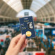 Dark blue background with gold-colored seal and gold and white text. Add your own photo or those of your guests.