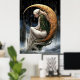 **This beautiful POSTER features a mystical Moon Keeper resting within a crescent moon, surrounded by celestial details and dreamlike textures.