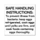 FDA requires all cartons of shell eggs that have not been treated to destroy Salmonella to carry the following safe handling statement: SAFE HANDLING INSTRUCTIONS To prevent illness from bacteria: keep eggs refrigerated, cook eggs until yolks are firm, and cook foods containing eggs thoroughly. 2025