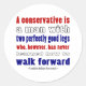 Slightly darker colors on this image in which Franklin Delano Roosevelt defines Conservatism: "A conservative is a man with two perfectly good legs who, however, has never learned how to walk forward."